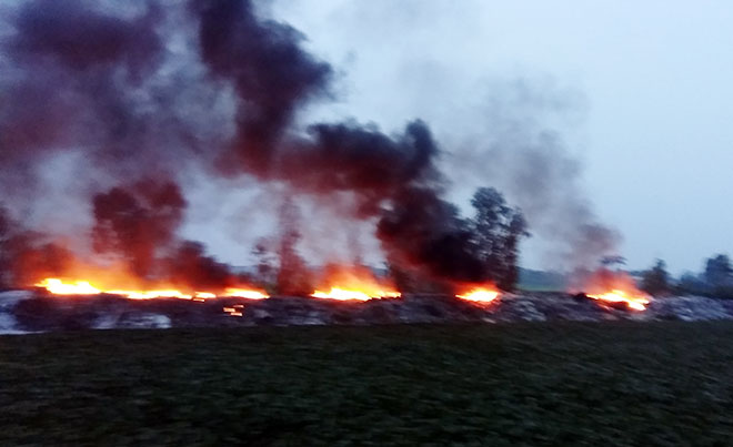 Ở đó tập trung nhiều loại phế thải công nghiệp như vỏ nhựa dây điện, dây cáp, nhiều loại thiết bị điện hỏng… Hàng đêm, bãi rác này bốc lửa ngùn ngụt, thổi khói bụi và mùi khét lẹt về phía xã Thụy Lâm và Vân Hà của huyện Đông Anh. Chỉ hôm nào không có lửa từ phía bãi rác, người dân khu vực lân cận mới dám mở cửa hít khí trời. Điều đáng sợ là tình trạng đốt rác thải công nghiệp ở đây đã diễn ra hàng chục năm nay mà không được khắc phục.