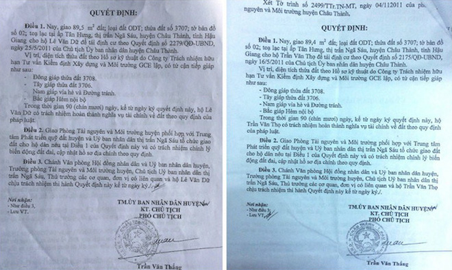 | Một thửa đất nhưng UBND huyện Châu Thành cấp cho 2 hộ dân. |