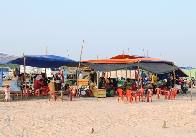 | Nhiều lều quán mọc lên tại bãi tắm. |