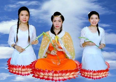 Một phụ nữ đến từ Tiền Giang nói có thấy “Công chúa Hằng Nga” trong tấm ảnh giáng thế cùng hai “tì nữ”, tọa trên đài sen đàng hoàng. Anh T xe ôm thì nói lần trước cũng chở khách đến đây trị bệnh, anh đã tận mắt thấy “Công chúa Hằng Nga” được hai “tì nữ” cơm bưng, nước rót, rửa mặt, vệ sinh trên “ngai vàng” trước bàn thờ Phật, tổ tiên.