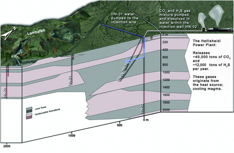 Dự án hoạt động theo nguyên lý hấp thụ CO2 tỏa ra từ ống khói nhà máy lên bầu khí quyển, trước khi đem trộn với chất khí hydrogen sulfide (H2S), tạo thành dung dịch axit sunfuahidric yếu dễ hòa tan trong nước, rồi bơm thứ hợp chất này cho lắng đọng kết tủa với các vỉa đá bazan vốn phủ băng vĩnh cửu, nằm ở độ sâu hơn 700m thuộc khu vực đáy biển rộng lớn bên dưới HGPS, trở thành những khối đá rắn vô hại đối với môi trường sinh thái trên địa cầu.