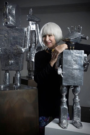 | Nghệ sĩ Fonssagrevis-Solow bên tượng điêu khắc robot của mình. |