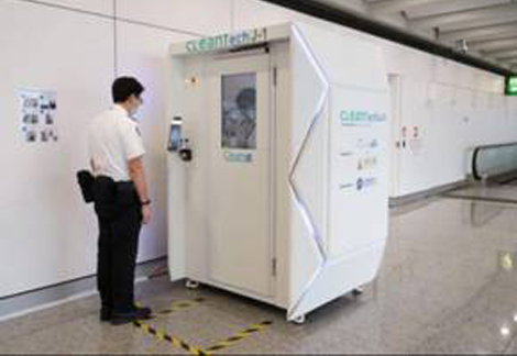 Trong ảnh là một buồng khử trùng tự động đời mới, được trang bị trước lối vào các ga tàu điện ngầm ở quốc đảo Singapore, với khả năng có thể tiêu diệt tới 99 phần trăm tất cả các loại virus và vi khuẩn khác nhau, kể cả virus SARS-CoV-2 gây bệnh COVID-19.