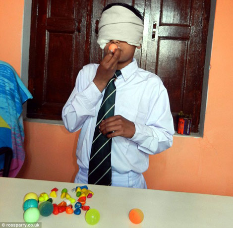 Vikas bịt mắt nhưng vẫn nhận diện được màu sắc. |