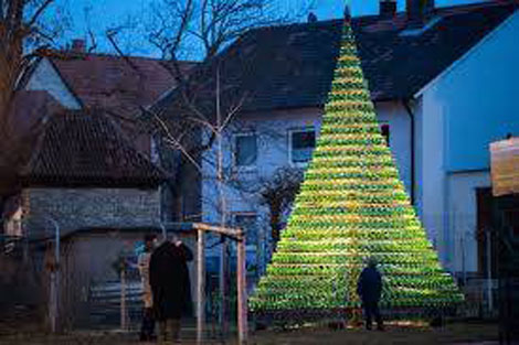 Cư dân làng Nordheim-am-Main, thuộc huyện Kitzingen ở bang Bavaria phía nam nước Đức vừa hoàn thành một mô hình cây thông độc đáo, được cấu thành từ… 1.100 chai rượu vang nhằm đón chào dịp Giáng sinh sắp tới.