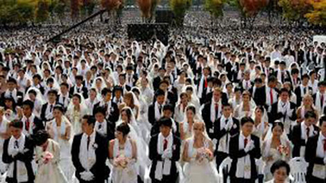 | Đám cưới tập thể của 40.000 cặp đôi tại khuôn viên đại học Sunmoon ở Seoul vào năm 2009. |