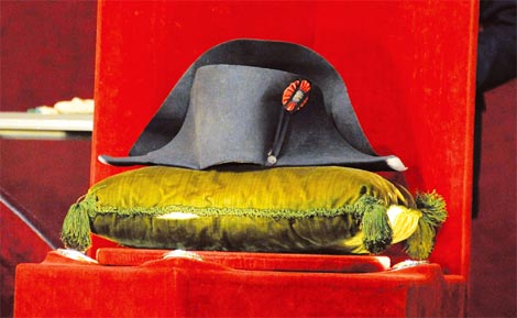 Vật hiếm có này do dòng họ chuyên chế tác mũ trứ danh Poupard thế kỷ XVIII ở Paris thực hiện. Sau khi NapoLéon băng hà, ông Joseph Giraud là một bác sĩ thú y trong gia đình của Napoléon đã giữ chiếc mũ lại làm kỷ niệm.