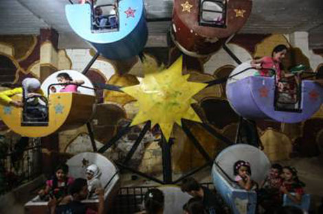 Được những người tình nguyện xây dựng cách đây hơn 18 tháng ở khu ngoại ô Damascus do quân nổi dậy kiểm soát, công viên Childhood Land có diện tích hạn hẹp song là nơi lý tưởng giúp trẻ em tạm quên đi khói lửa chiến tranh đang diễn ra tàn khốc trên mặt đất.