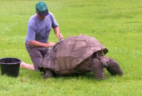 Trong ảnh là bác sĩ thú y người Anh Joe Hollins, đang vệ sinh thân thể cho cụ rùa Jonathan 184 tuổi, được Sách Kỷ lục Guinness ghi nhận như là “Sinh vật cao niên nhất đang còn sống trên hành tinh”.