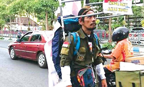 Cụ thể, anh M. Bastoni rời làng quê Dono trên triền núi Wilis, một ngọn núi lửa đã tắt cao 2.500m từ ngày 18-7, rồi đến Jakarta đúng dịp kỷ niệm lễ Quốc khánh Indonesia lần thứ 74 vào ngày 17-8 tới đây.