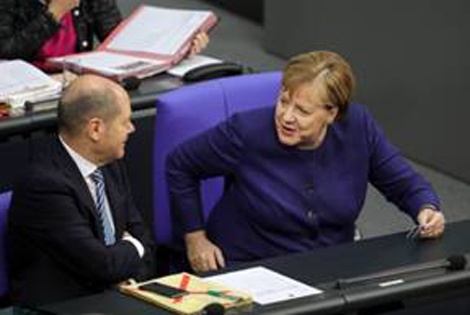 Người bên phải trong ảnh là đương kim Thủ tướng Đức Angela Merkel đang bày tỏ niềm vui với Phó thủ tướng kiêm Bộ trưởng Bộ Tài chính Olaf Scholz, sau khi dự thảo Nghị định bãi bỏ sắc thuế Đoàn kết với đại bộ phận dân chúng, chỉ áp dụng loại thuế này với những người có thu nhập cao do Chính phủ đệ trình, vừa được Bundestag (Quốc hội Đức) bỏ phiếu chấp thuận và chính thức có hiệu lực kể từ đầu năm 2021.