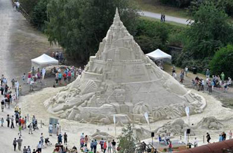 Sau hơn một tuần miệt mài lao động kể từ ngày 24-8 đến 1-9 vừa qua, nhóm nghệ sĩ tạo hình quốc tế Benno Linde chuyên tạo hình và điêu khắc trên cát đã hoàn thành một công trình khổng lồ, với chiều cao 14,15m, xứng đáng được lưu danh vào Sách Kỷ lục Guinness.