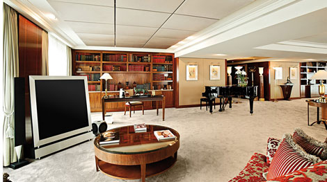 Khu căn hộ rộng mênh mông này có tầm nhìn bao quát trọn con hồ Geneva thơ mộng bên dưới và rặng núi Alpes hùng vĩ phía sau, gồm 12 phòng ngủ riêng biệt với mỗi tủ đựng đồ trong phòng phảng phất mùi hương thơm khác nhau tùy theo sở thích của khách. Trong từng phòng ngủ đều có bàn chơi billard, cây đàn dương cầm hiệu Steinway & Sons để khách giải khuây.
