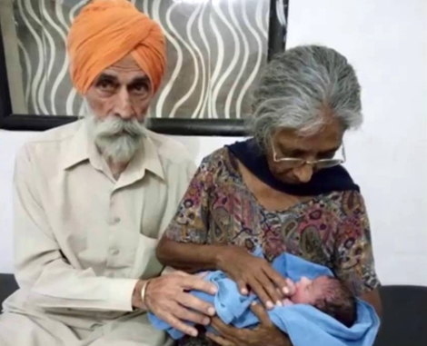 Người bên phải trong ảnh là bà Dadzhinder Kaur 72 tuổi, đang cùng chồng âu yếm đứa con mới chào đời, trở thành sản phụ cao niên nhất ở Cộng hòa Ấn Độ.
