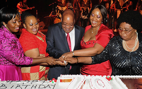 Tính đến năm 2012, ông Zuma đã cưới vợ 6 lần, trong đó có 2 lần ly dị và có tổng cộng 20 người con. Trong 6 bà vợ của Zuma, mỗi người đều nhận được khoản lương hằng năm do ngân sách nhà nước trang trải là 11 triệu rand tiền Nam Phi (ZAR), tương đương 770.000 euro, ngang cấp bậc bộ trưởng trong chính phủ.
