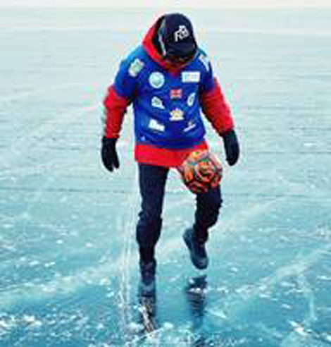 Vừa đi bộ vừa tâng bóng xuyên qua hồ Baikal
