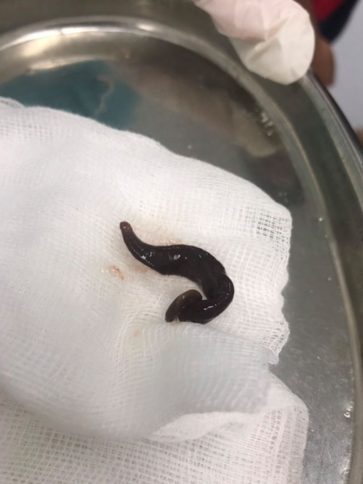 Con vắt dài 3cm sống 1 tháng trong mũi bé trai