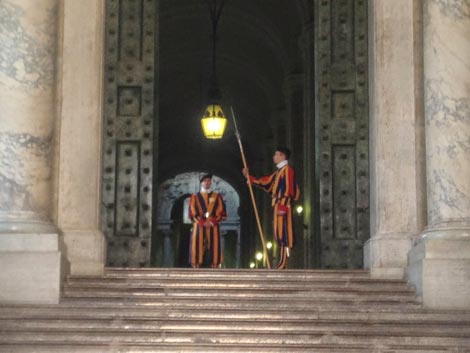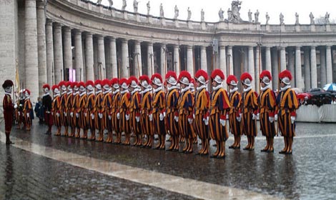 | Vệ binh Thụy Sĩ canh gác mọi lối ra vào Vatican. |