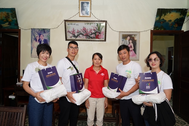 | Đại diện Amway Việt Nam đến thăm hỏi và tặng quà các gia đình trong Làng trẻ em SOS Vinh. |