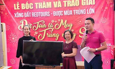 Theo đó, 5 du khách may mắn nhất đã sở hữu các phần quà có giá trị từ HanoiRedtours. Cụ thể, chị Nguyễn Diệu Linh ở Mỹ Đình, Hà Nội mua tour đi Trung Quốc đã may mắn trúng giải Đầy đủ là 1 Tivi Sony 40 inch; anh Nguyễn Văn Long ở Đại Bái, Bắc Ninh mua tour đi Hàn Quốc trúng máy giặt Electrolux;