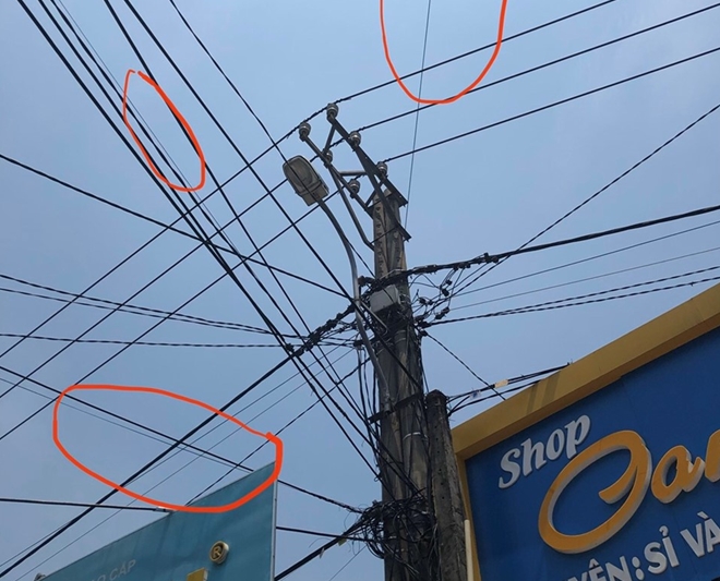 | Công ty CP Viễn thông FPT chi nhánh Huế kéo dây thuê bao băng đường sai quy định (vùng khoanh đỏ). |