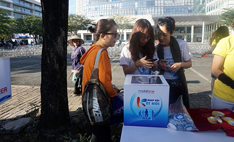 Trong chương trình đi bộ “MobiFone - Ngày hội Kết nối”, Ban tổ chức đã phát các sticker hình bông hoa màu đỏ, xanh, vàng tương ứng với các mệnh giá 200.000 đồng, 100.000 đồng và 50.000 đồng theo tổng số tiền các cá nhân, đơn vị đóng góp.