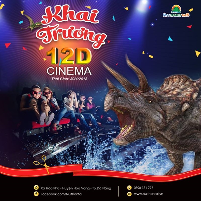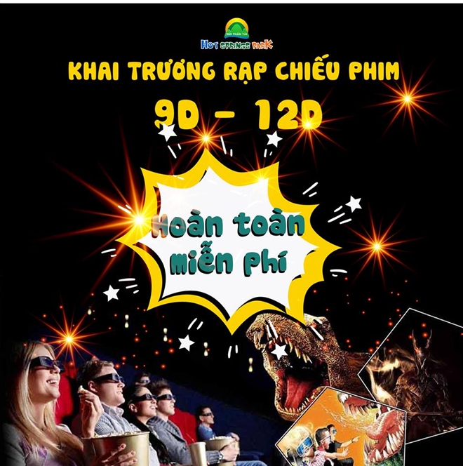 Đặc biệt, từ ngày 29-4, bên cạnh các dịch vụ vui chơi giải trí và chăm sóc sức khỏe đẳng cấp tại CVSKN Núi Thần Tài như: tắm khoáng nóng, vui chơi công viên nước, đấu trường bùn, viếng đền thần tài…. thì tại khu du lịch Núi Thần Tài đã khai trương rạp chiếu phim 9D - 12D thu hút đông đảo du khách đến trải nghiệm.