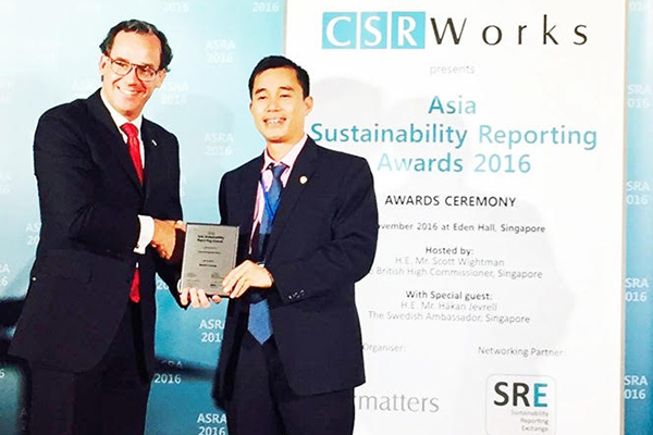 | Đại diện Lãnh đạo Bảo Việt nhận giải nhất Báo cáo tích hợp xuất sắc nhất Châu Á 2016 và Giải đặc biệt Báo cáo phát triển bền vững tốt nhất Châu Á 2016 |