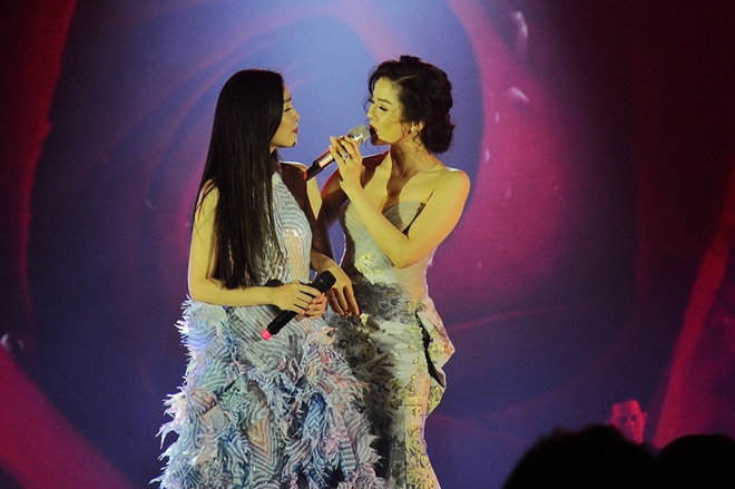 | Cặp bài trùng Lệ Quyên - Hiền Thục tạo ra sự đối lập thú vị về mặt phong cách trên sân khấu. |