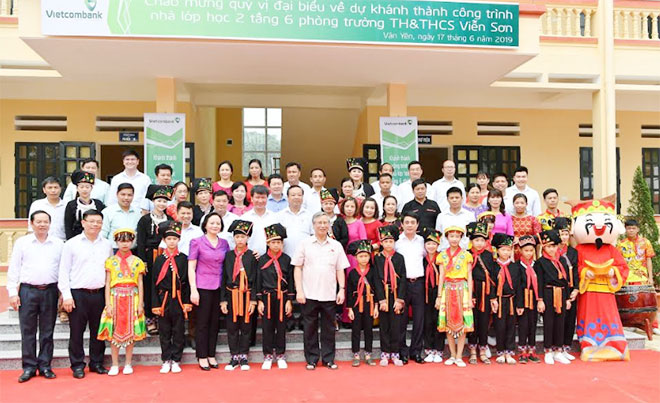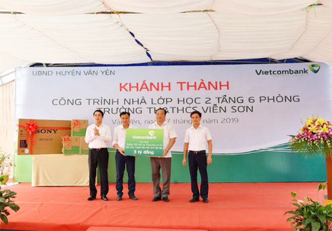 Một số công trình tiêu biểu do Vietcombank tài trợ như: xây dựng Trường PTDT Bán trú Tiểu học và THCS Túc Đán, xã Túc Đán, huyện Trạm Tấu; xây dựng Trường PT Dân tộc Bán trú THCS Lao Chải, xã Lao Chải, huyện Mù Cang Chải; khánh thành công trình lớp học Trường TH&THCS Viễn Sơn hôm nay và công trình Trường phổ thông Dân tộc bán trú tại huyện Văn Chấn dự kiến được khánh thành trong tháng 10 tới.
