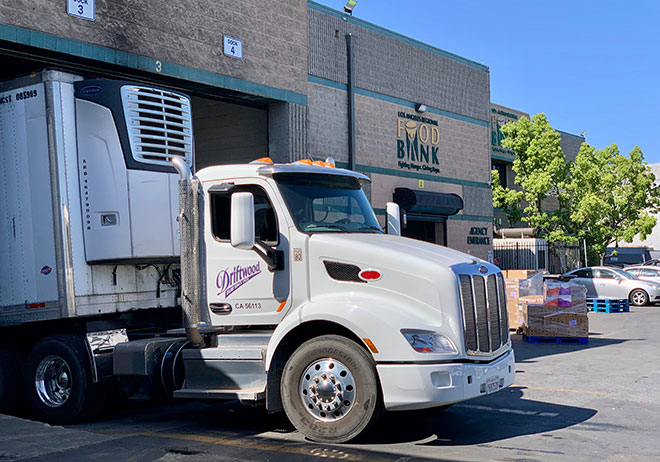 | Các nhân viên của Driftwood trực tiếp giao sữa đến L.A Food Bank. |
