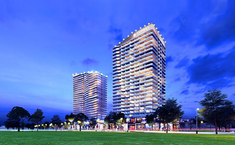 | Tòa tháp cao 30 tầng với hơn 600 căn hộ khách sạn được thiết kế theo phong cách châu Âu sang trọng. Tất cả đều có view hướng biển. |