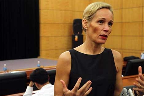 Đại sứ Thụy Điển tại Việt Nam Camilla Mellander trả lời phỏng vấn tại hội thảo. |