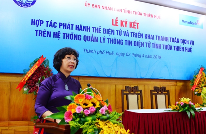 Tiếp tục phát huy hiệu quả đạt được, VietinBank vinh dự được UBND tỉnh Thừa Thiên - Huế lựa chọn tham gia hợp tác, nghiên cứu, xây dựng và triển khai 2 nội dụng là “Đề án Thẻ điện tử công chức, thẻ điện tử cá nhân/doanh nghiệp” và “Giải pháp Thanh toán hóa đơn trên Hệ thống quản lý Thông tin điện tử của tỉnh”. Việc thí điểm thẻ điện tử và tích hợp thanh toán dịch vụ trên hệ thống thẻ điện tử do VietinBank và tỉnh Thừa Thiên - Huế triển khai là mô hình đầu tiên trên toàn quốc.