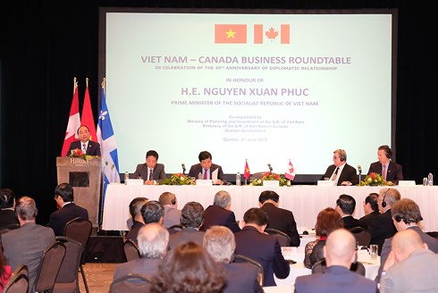 Bên cạnh đó, Thủ tướng cho rằng vai trò và vị thế quốc tế của Việt Nam tiếp tục được nâng cao. Việt Nam đã vinh dự được là quốc gia khách mời dự họp tại G7 mở rộng tháng 5-2016, G20 mở rộng tháng 7-2017 và G7 mở rộng lần này tại Canada. Đặc biệt, Việt Nam đã tổ chức thành công Tuần lễ Cấp cao APEC 2017, đóng góp quan trọng vào thúc đẩy tự do hóa thương mại và liên kết kinh tế khu vực. Việt Nam đang triển khai 11 Hiệp định FTA song phương và đa phương. Tháng 03-2018, Canada và Việt Nam đã tham gia ký và đang tiến hành phê chuẩn Hiệp định CPTPP, tạo nên một khối kinh tế tự do của 11 quốc gia có quy mô 13% GDP toàn cầu. Bên cạnh đó, Hiệp định EVFTA với EU đã hoàn tất rà soát pháp lý và chuẩn bị cho ký chính thức và phê chuẩn cuối năm 2018.