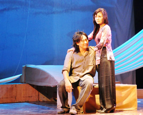 | Họa sĩ Trí Đức vai Minh trong “Cát trắng như gạo”. |
