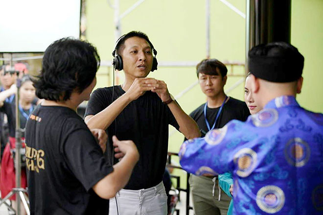 | Đạo diễn Huỳnh Tuấn Anh trên phim trường. |