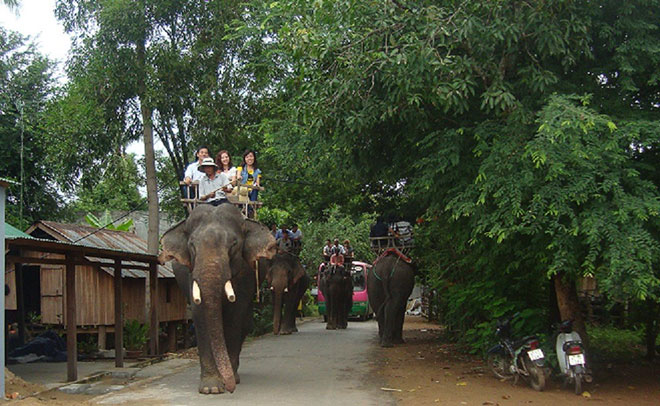 | Voi buôn Đôn dạo chơi với khách. |
