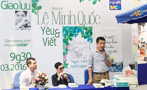 | Nhà thơ, nhà báo Lê Minh Quốc giao lưu với bạn đọc tại Hội Sách TP Hồ Chí Minh lần thứ 9. |