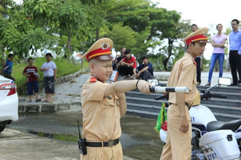 | Bé Đỗ Tuấn Dũng (bệnh nhân ung thư máu) đã thỏa nguyện ước mơ được làm Cảnh sát Giao thông một ngày trong lễ sinh nhật tròn 10 tuổi của mình. |
