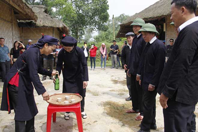| Tục mời rượu và hát trong đám cưới của người Sán Chí. |