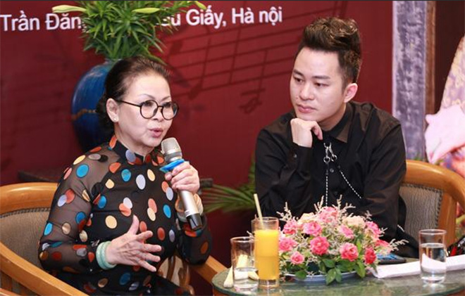 | Ca sĩ Khánh Ly và Tùng Dương tại buổi họp báo giới thiệu live show “Người về bỗng nhớ”. |