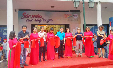 | Khai mạc triển lãm “Sắc màu cuộc sống tôi yêu” ở Nhà triển lãm 45 Tràng Tiền. |