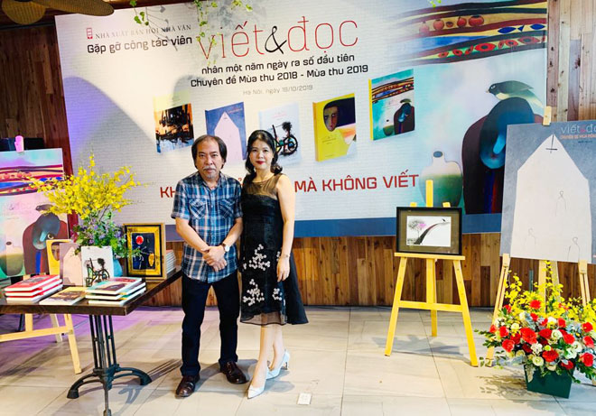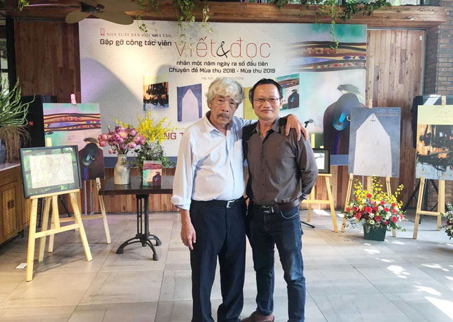 | Nhà văn Bảo Ninh và nhà văn Trần Nhã Thụy trong tiệc sinh nhật lần thứ nhất của chuyên đề mùa thu: “Viết & Đọc”. |