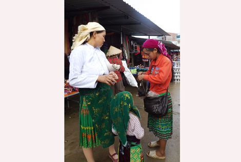 Bà Minh Hạnh chỉ tay vào đám thanh nữ mặt hoa da phấn, áo đỏ váy xanh đang nhanh chân rảo bước trên phố, nói: “Ở nhà hay đi nương muốn ăn mặc thế nào thì mặc nhưng xuống phố chơi chợ thì dứt khoát là phải đẹp. Trang phục phụ nữ trong chợ cũng là điểm nhấn của chợ Đồng Văn đấy”.