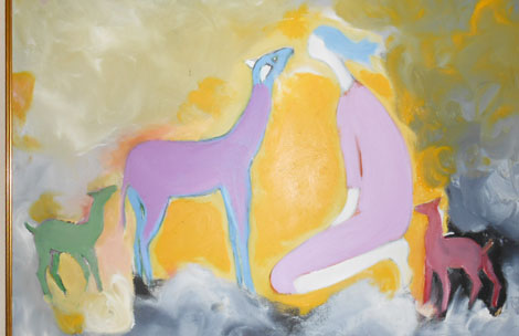 Mấy năm trước, gia đình nhà văn Nguyễn Đình Chính có chuyện buồn, ông bà có đứa con gái bị bệnh rồi mất, thương nhớ con ám ảnh vợ chồng ông suốt thời gian dài. Nỗi day dứt ấy ông đã thể hiện vào tranh. Bức vẽ “Chị về với các em”, ông vẽ con gái ông đang ngồi vỗ về ba con chó dáng buồn thiu, những con vật mà ông đã nuôi trong nhà hàng chục năm, lúc còn sống con gái ông rất yêu quý chúng. Tôi đoán chắc Nguyễn Đình Chính vừa khóc, vừa vẽ bức tranh này.