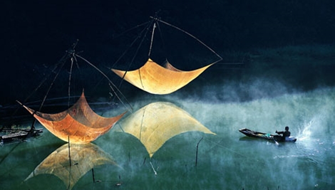 | Bức "Buổi sáng mùa đông" (trên) của Nguyễn Trọng Nghĩa là chị em song sinh với bức "Vó đánh cá" của Lý Hoàng Long. |