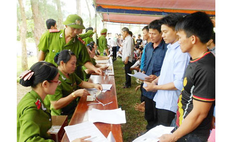 Lãnh đạo Tổng cục VIII và cán bộ Trại giam Sông Cái tặng quà các phạm nhân trong cuộc phát động viết thư  “Gửi lời xin lỗi”.
