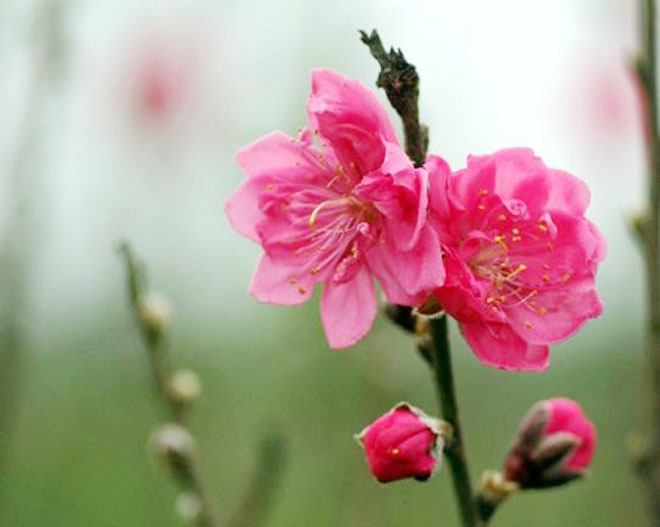 | Hoa đào đỏ thắm biểu trưng mùa xuân miền Bắc. |