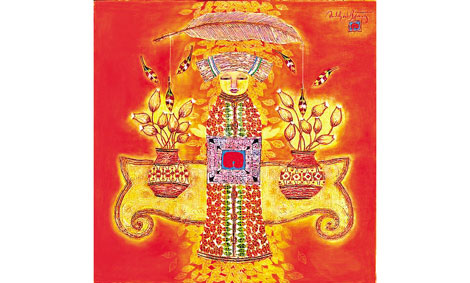 | Một bức tranh chứa nhiều ký hiệu và in logo nhằm chống sao chép của họa sĩ Tôn Thất Bằng. |